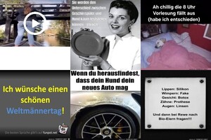 Heyho am Montag! Heute ist der 25. Weltmännertag und wenn ich es euch heute nicht gesagt hätte, dann wäre das genauso untergegangen wie die letzten 24 Weltmännertage. Denn erst seit dem Jahr 2000 ist das ein Aktionstag, der jährlich am 3. November stattfindet. Dieser soll laut Aussage des Schirmherrn Michail Gorbatschow das Bewusstsein der Männer im gesundheitlichen Bereich erweitern. So liege die Lebenserwartung der Männer im Durchschnitt sieben Jahre unter der der Frauen. Aber er darf nicht mit dem Internationalen Männertag am 19. November verwechselt werden. Das ist der eigentliche Männergedenktag, wenn man mal den Vatertag außer Acht lässt  Es grüßt euch euer Weltmännertag feiernde Fossy